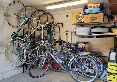 FuhrparkBei uns hat jeder zwei Fahrräder, bis auf Kerstin, die hat nur eins. Dafür hab' ich drei.  |