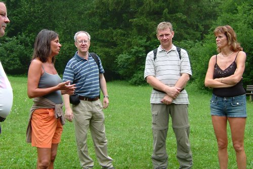 ![]() 8:30 Uhr - Treff zur Wanderung in die "Fränkische Schweiz" Ein Glück hat es das Wetter gut mit uns gemeint. Verglichen mit dem, was uns eine Woche eher oder dann den ganzen Juli 2006 hindurch erwartet hätte, waren die Wolken für die ca. 15km Runde eher angenehm. Auf geht's zum Frühstück nach Betzenstein.